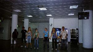 Abschiedsfoto: Marius, Maike & Katha :( Anzeigetafel Olbia