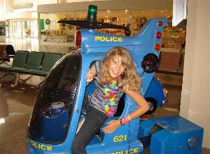 Katha im Hubschrauber Warten am Flughafen Olbia im Grünen