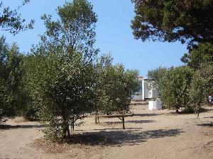 Blick vom Goofagio auf die "Sanitäranlagen" Luxus-Abwaschbereich auf *-Campingplatz