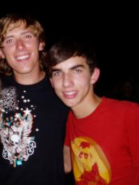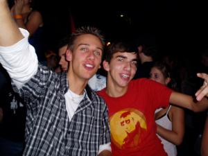 Wir mit unserer Urlaubsbändersammlung Surflehrer Philipp und Marius